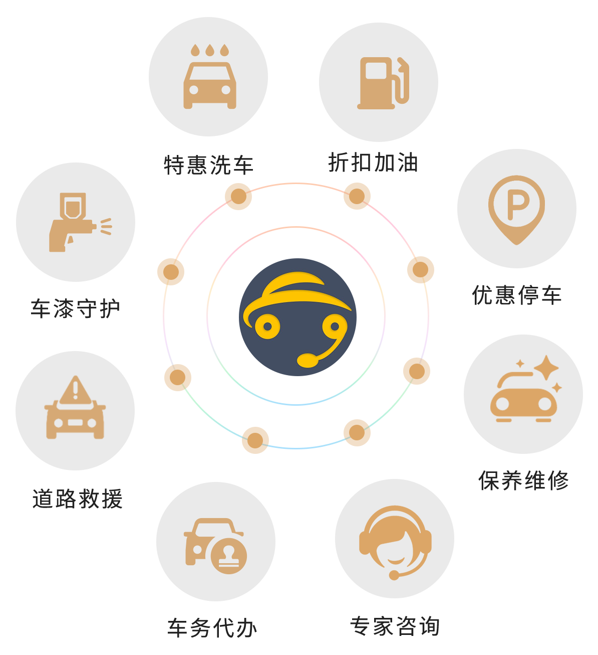 根据行业客户的车服板块的规划,向客户的产品平台提供洗车、停车、保养、喷漆、审车、救援等汽车后服务内容,并联合推出车主会员/俱乐部/年卡等权益服务,向中高端车主客户提供优质、优惠的车生活服务。